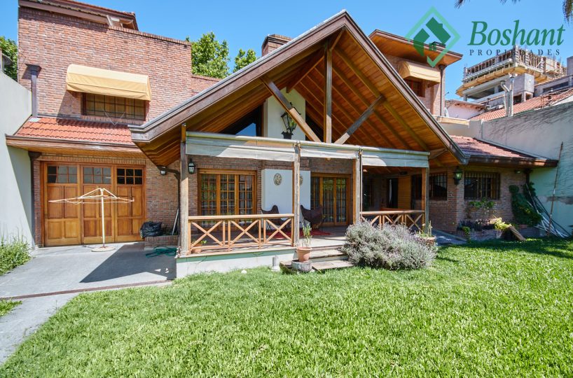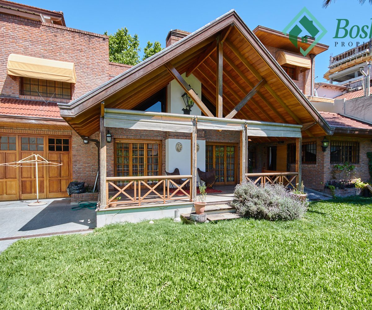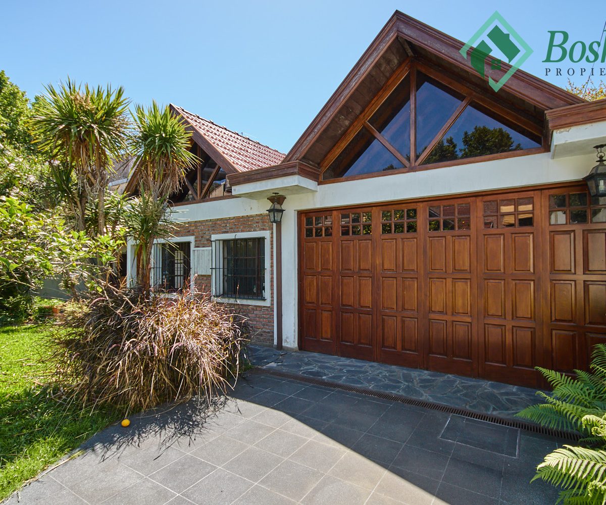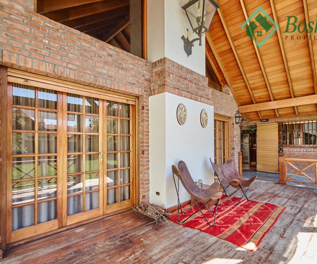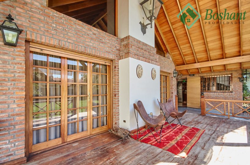 Gran quincho de doble techo a dos aguas en madera y tejas. Cuenta con pileta de cocina. Toilette. El quincho mide 11 x 5.80 metros. Estas amplias dimensiones sin división permiten crear espacios adicionales como un Gimnasio o sala de Cine (amplia pared para proyectar). Posee tablero eléctrico de llaves de corta corriente independiente del resto de la casa. Actualmente usado como deposito y garaje, puede albergar hasta tres autos, cuenta con una fosa, con acceso a sótano/bodega.