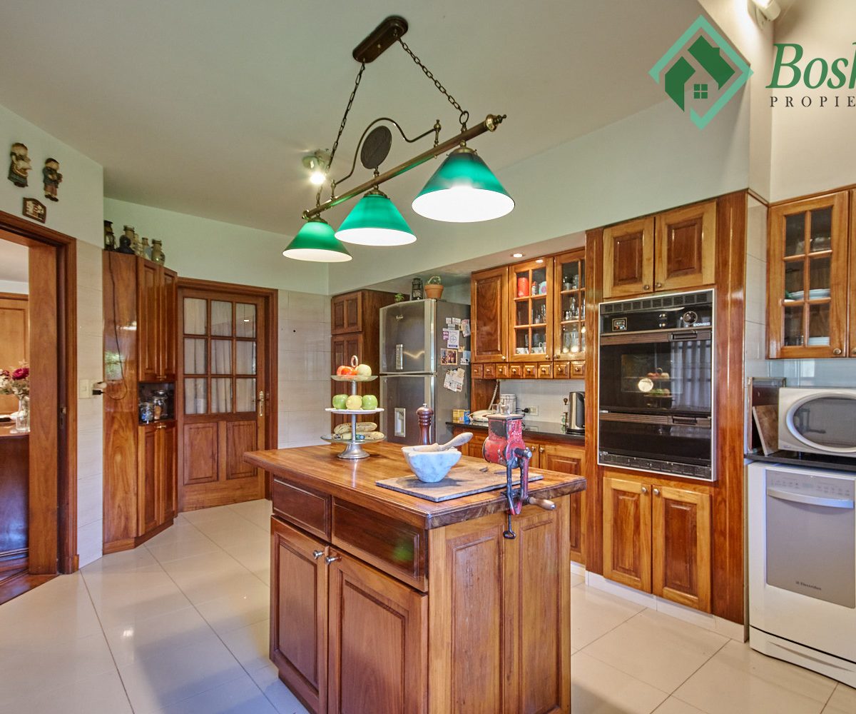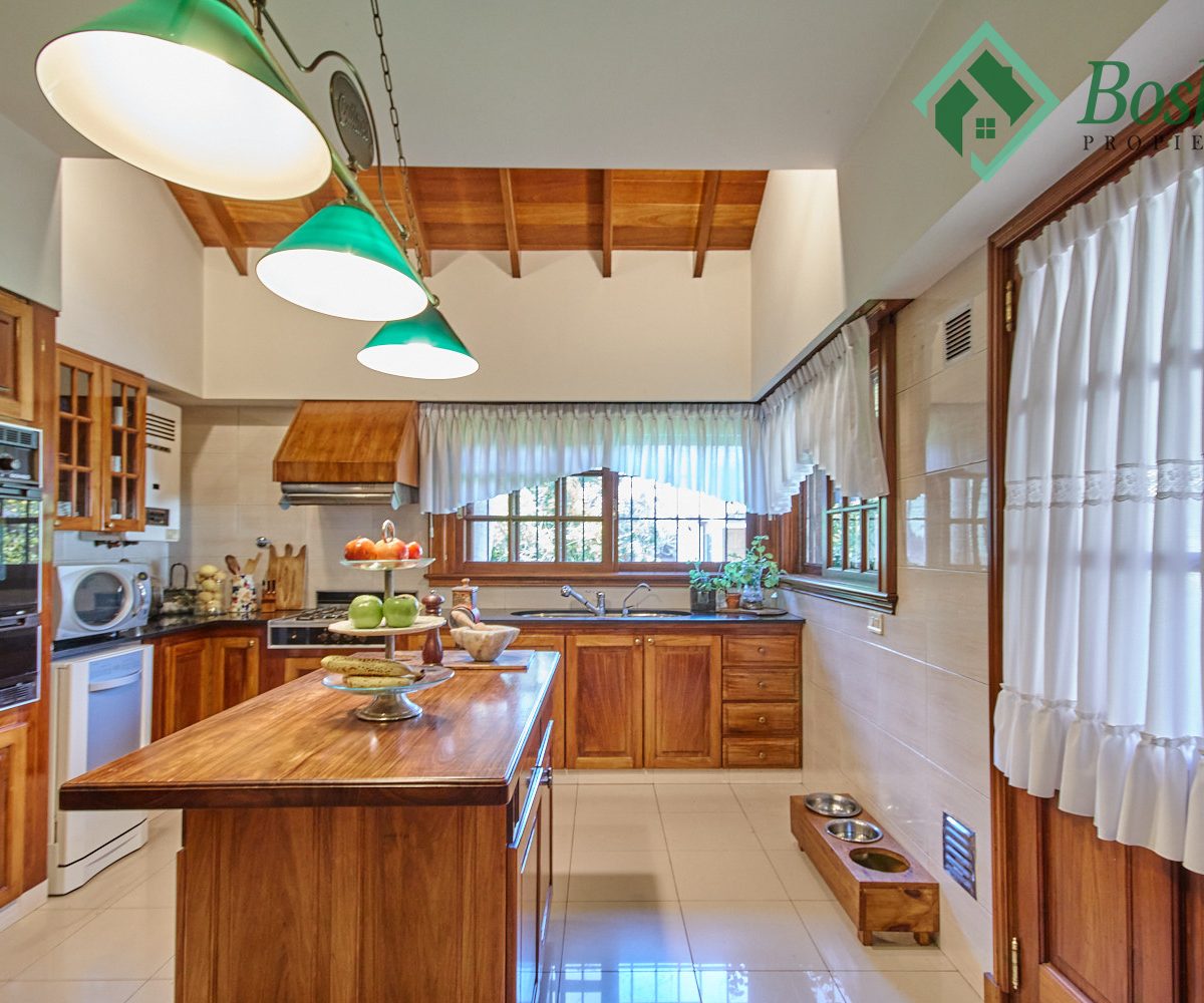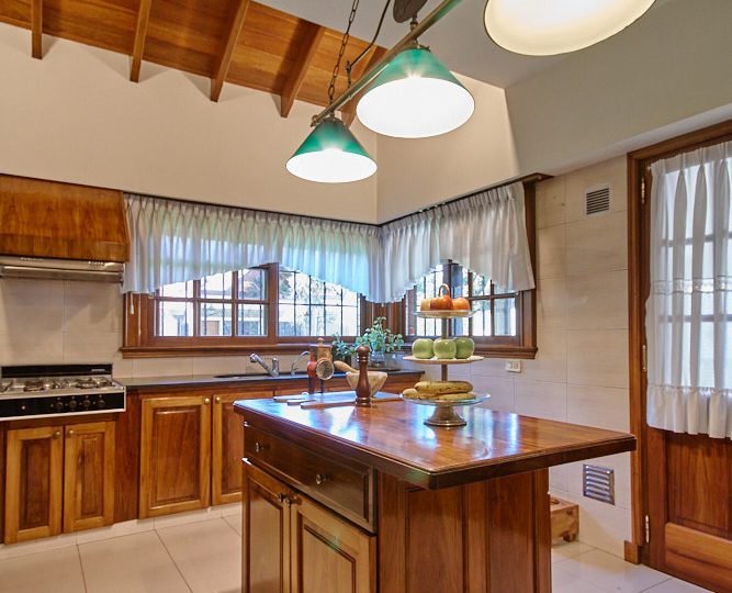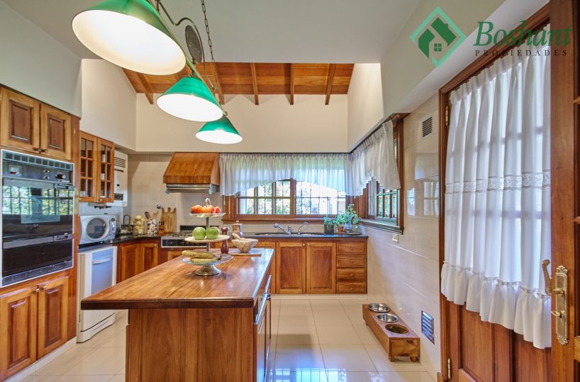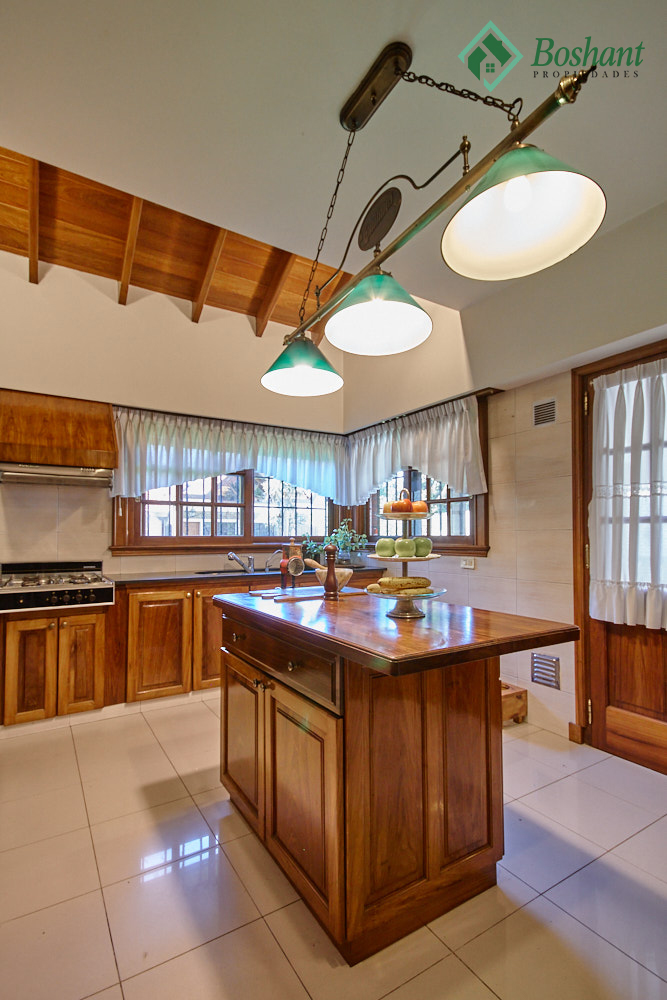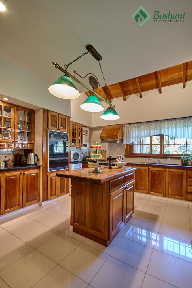 Cocina: Amplia cocina con isla desayunador realizada a medida en madera dura. Mesadas en mármol negro, muebles de cocina barnizados y laqueados al igual que los herrajes, horno empotrado y anafe con extractor. Conexión para lavavajillas, sistema de filtro de agua integrado bajo mesada.