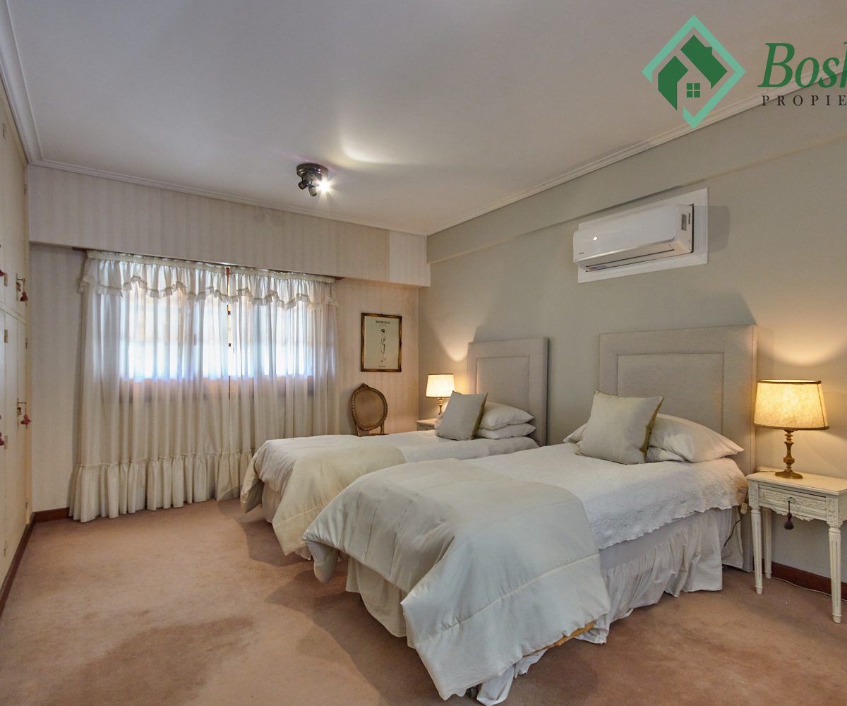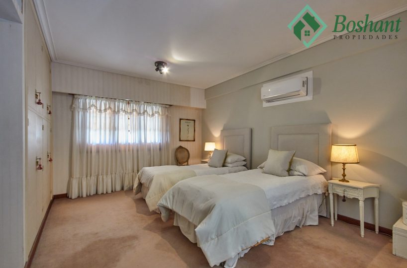 Segundo Dormitorio en suite mide 5.40 x 4 metros, con placard de madera empotrado, aire acondicionado. Baño completo con bañera, lavabo y pequeño maquillador con mesada de mármol de Carrara y bacha marca Ferrum de losa; inodoro y bidet. Radiador con calienta toallas. Ventilación e iluminación natural.