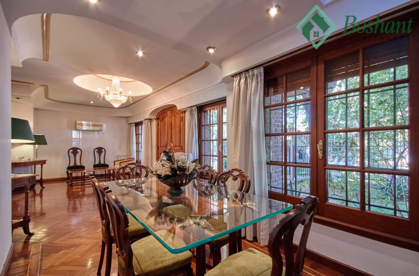 Casa de servicio: Adosado al quincho trasero existe una pequeña casa de servicio totalmente independiente. Esta equipada con cocina, mesada en acero con dos bachas, baño completo con amplia ducha. El dormitorio con techo alto cuenta con ventilador de techo.